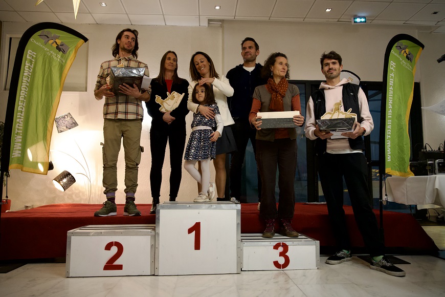 Sur le format trail long, Laurie ATZENI et Frédérique BONNAURE sont montées sur le podium féminin aux côtés de Laurence LACOTTE, alors que Aurélien KNIPPING et François DUBREUCQ complétaient le trio masculin derrière Marc PENNIELLO.
