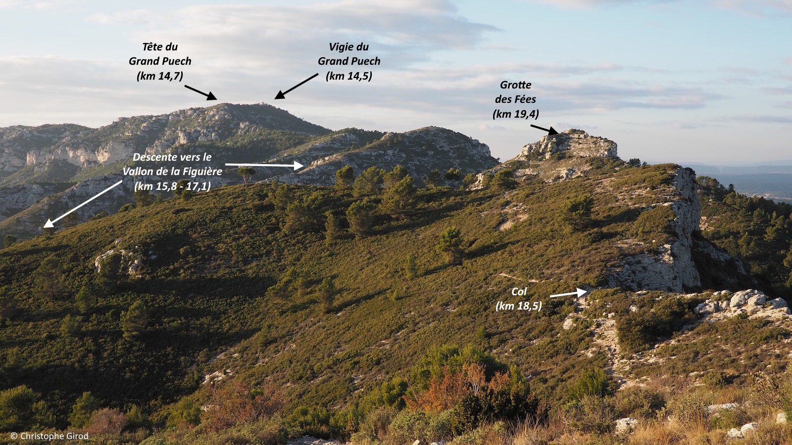 passage à la vigie, vallon de la Figuière, abords du Mont Julien, grotte des Fées… un concentré de terrain cassant, pierreux et sélectif.
